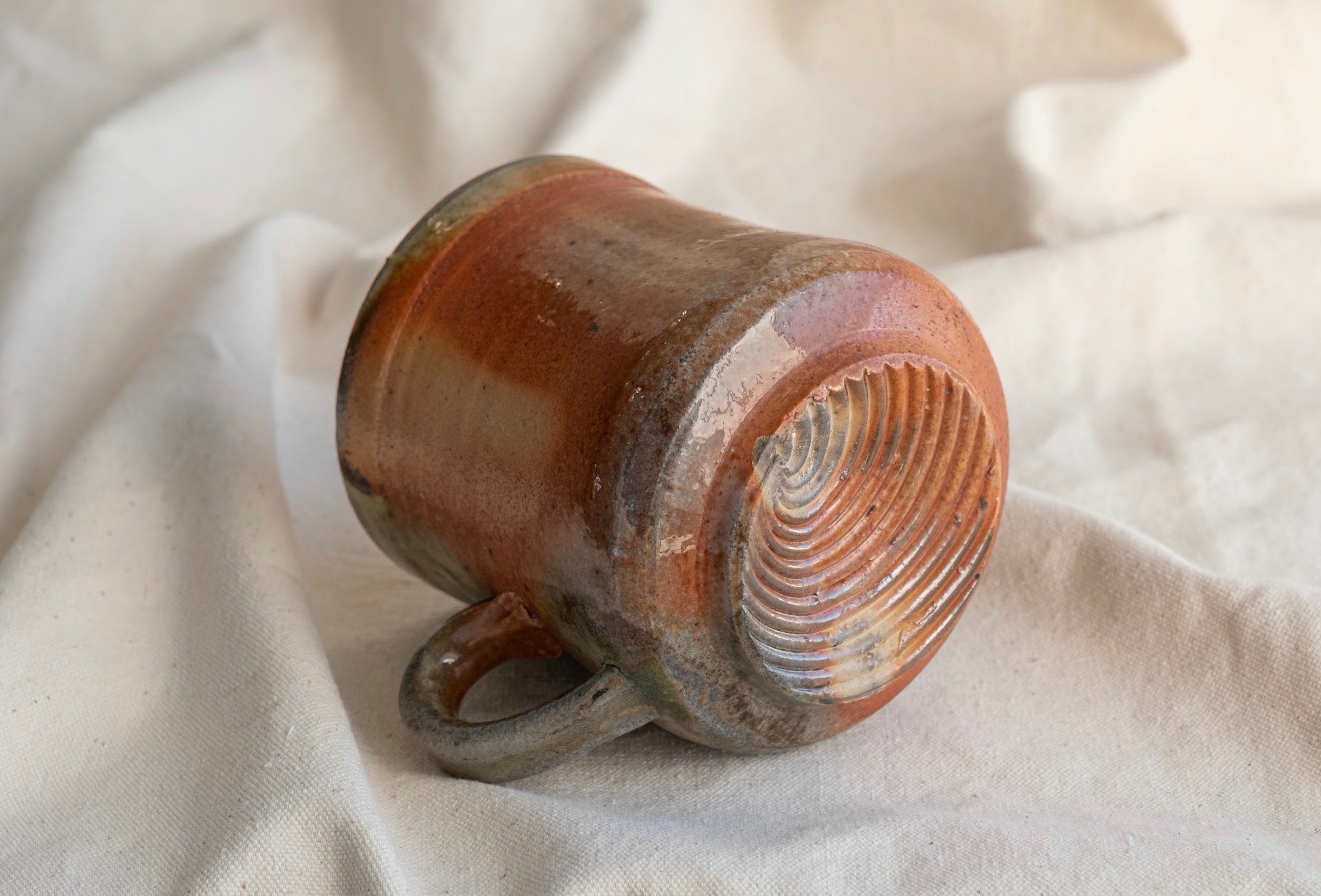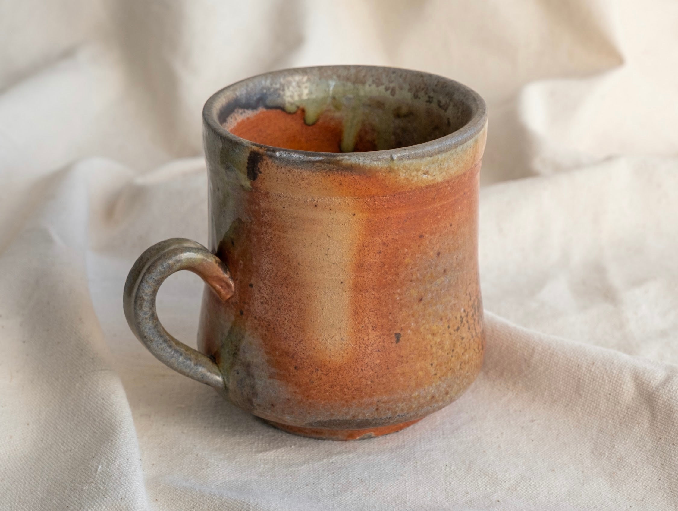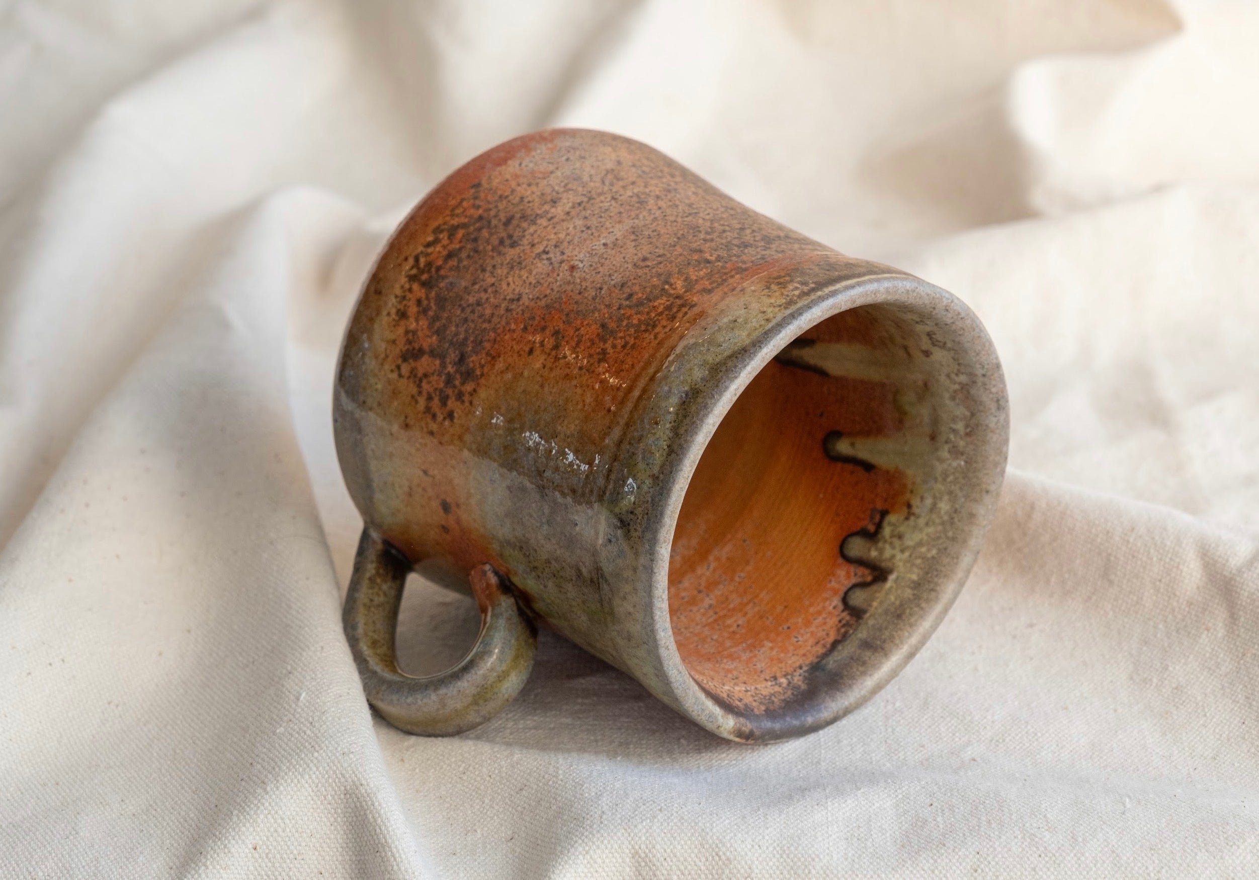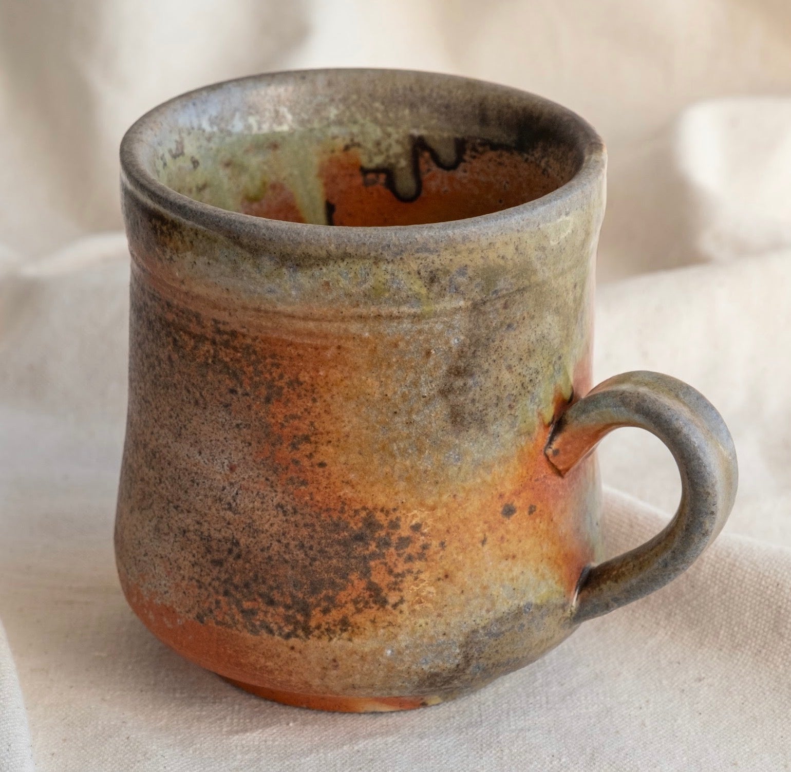 Named after the Saxophone player most notable for accompanying Dave Brubeck. Glossy Warm tones, with spices of orange and bright leaf green color this mug. A comfortable one-finger handle is going to get between you and this mug every time you reach for it. 5”w x 4”d x 4 1/2”t.
